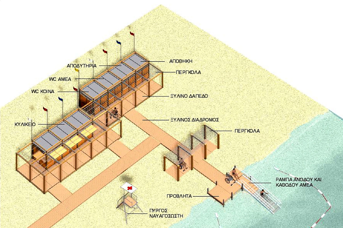 The program “Ornaments in the Sand” aimed at the standardisation and aesthetic upgrade of the removable and transportable lightweight structures of the Greek coastline.