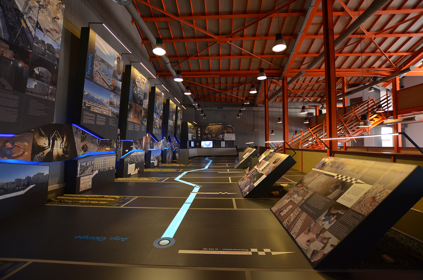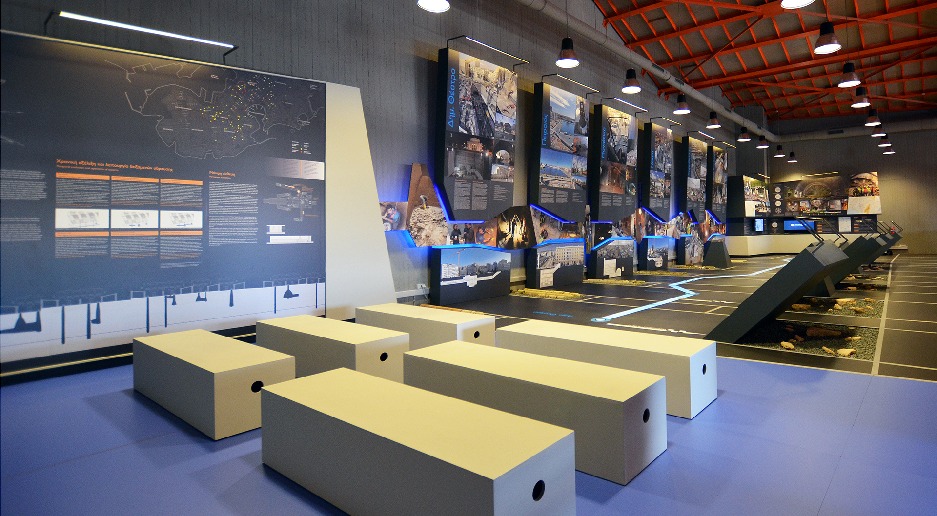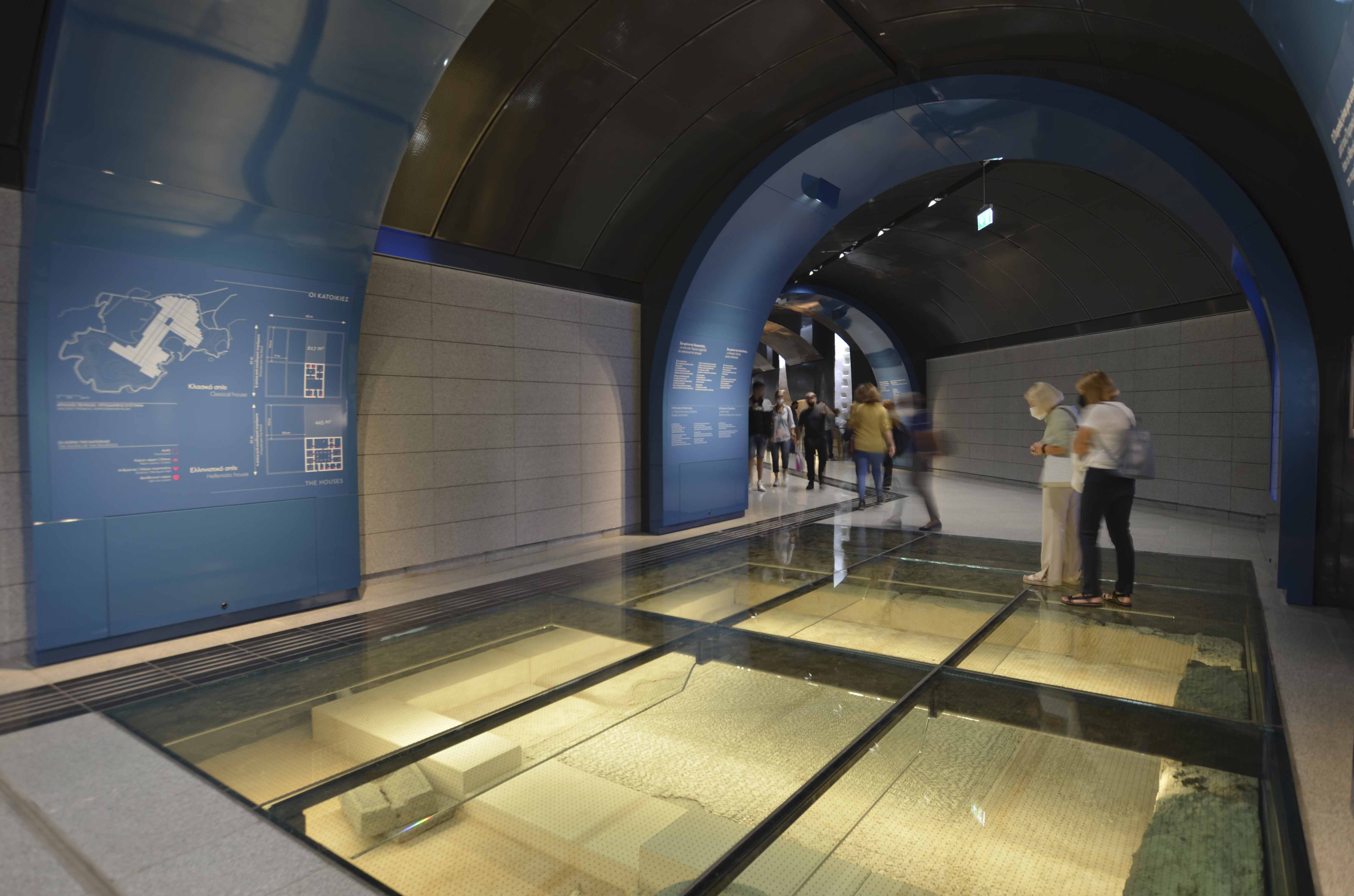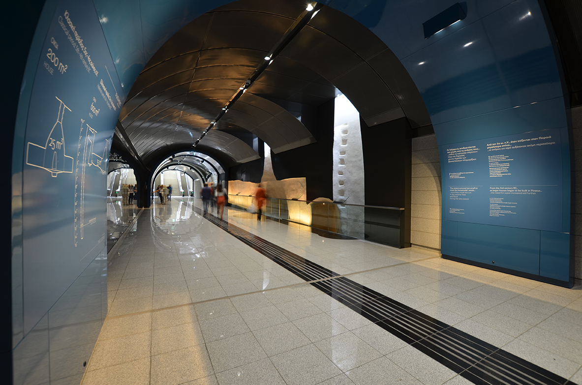 One of the most impressive metro stations in Attica is the one at the Piraeus Municipal Theatre. The history of water, an element entwined with Piraeus, is its central concept. Tetragon also designed and implemented the exhibition “Unearthed” that showcases the excavation work being done at Piraeus during the works for the Metro expansion stations.
