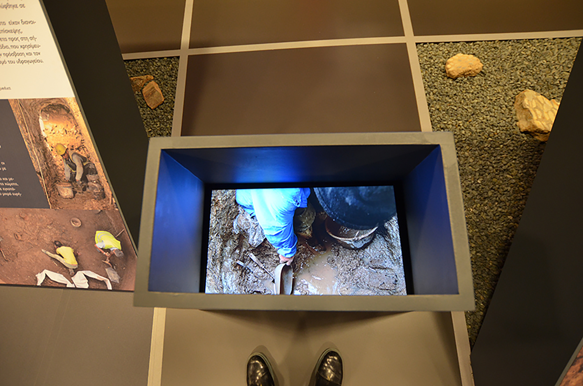 The exhibition "Unearthed" was installed at the building of Ksylapothiki in Piraeus. It will play a continuous informational and museopedagogical role for schools and adults, as it coexists with the storage and preservation areas of the finds and is connected with an open archaeological space that includes part of the city’s ancient water supply system.