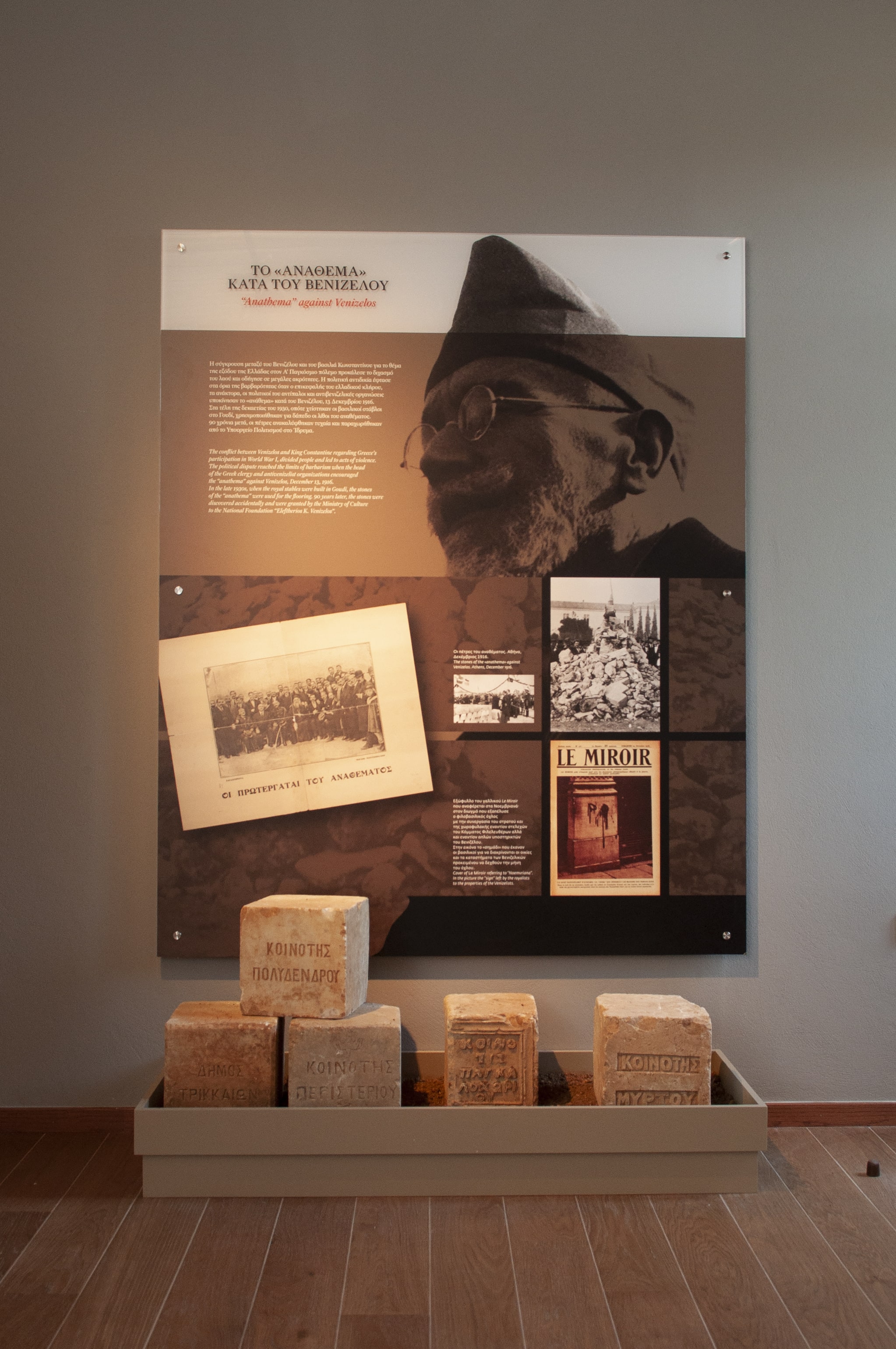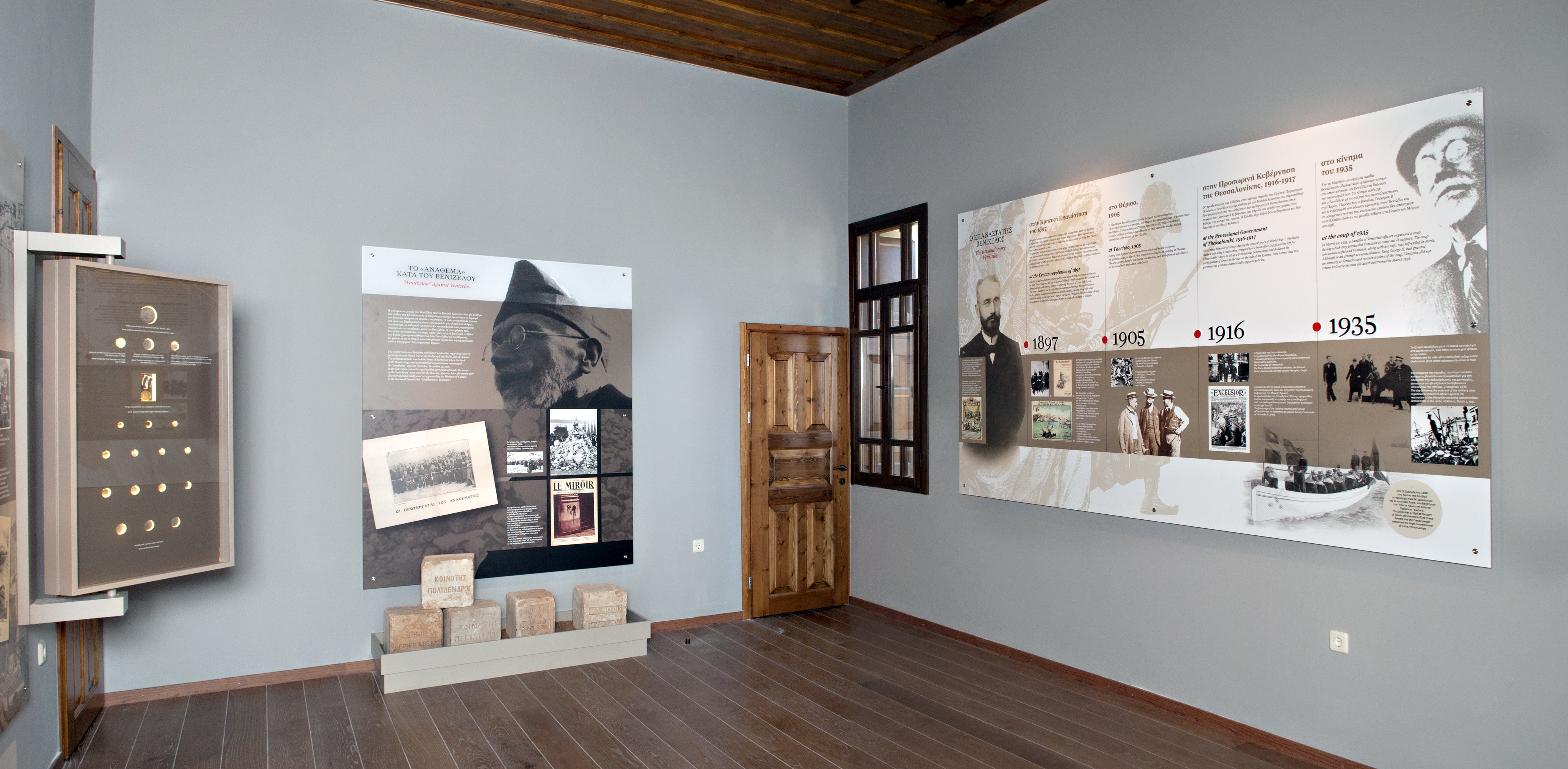 TETRAGON coordinated the design of the exhibition sections, designed the interior of the displays, the way the exhibits are showcased and realized the construction of the exhibition. Graphic design by Thanassis Georgiou.