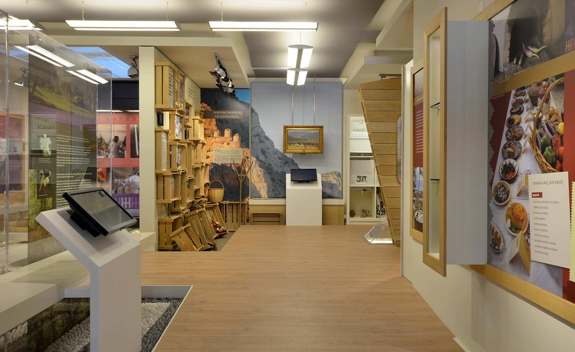 For Fabbrica Of Culture, TETRAGON and OIKOM made the museologic and museographic design and implemented the permanent exhibition, which focuses on the agricultural production and the sea trade of Eastern Peloponnese.