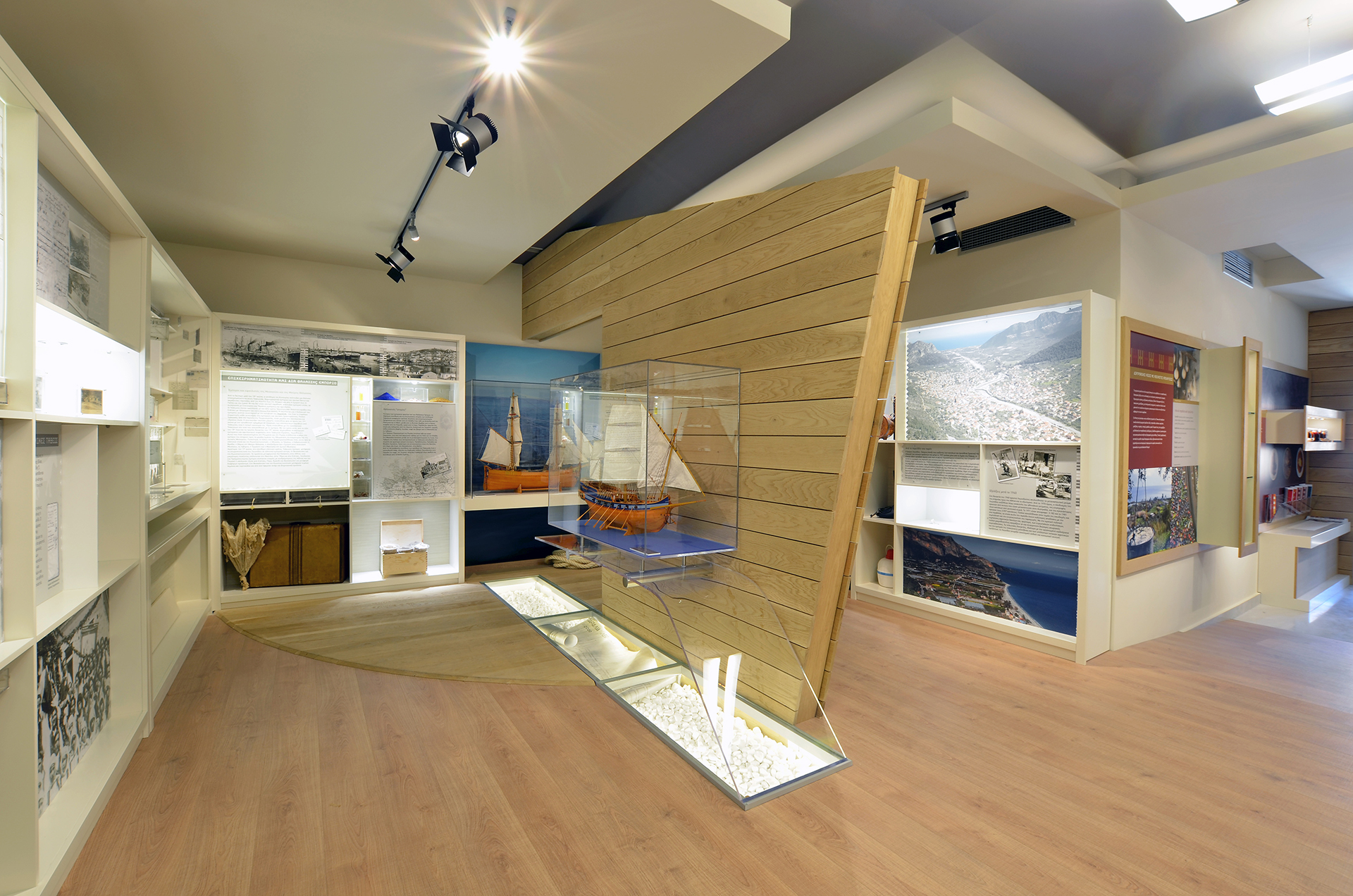 The exhibition is housed in the Fabbrica building in Leonidio, which used to be a power plant and school. Scenographic means and semantic references are widely used to narrate the area’s history and its particularities, as well as a wealth of visual material, interactive applications and museopedagogical means, based on the vast documentation material from the archives of Leonidio and private collections from local families.